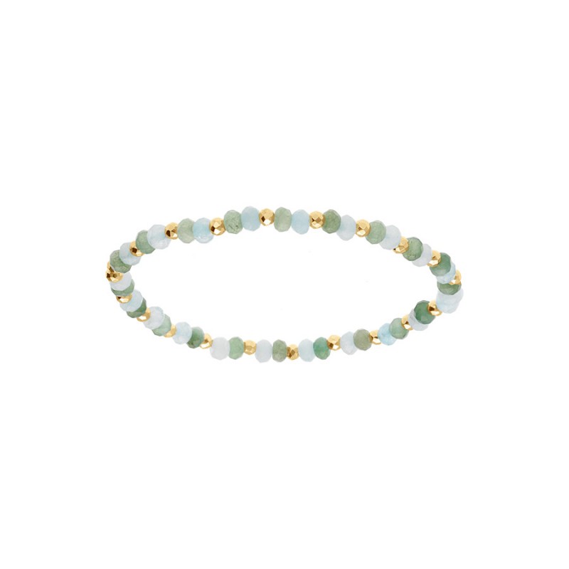 Bracelet acier EXTENSIBLE AMAZONITE ET AVENTURINE VÉRITABLE ET BOULES ACIER DORÉ