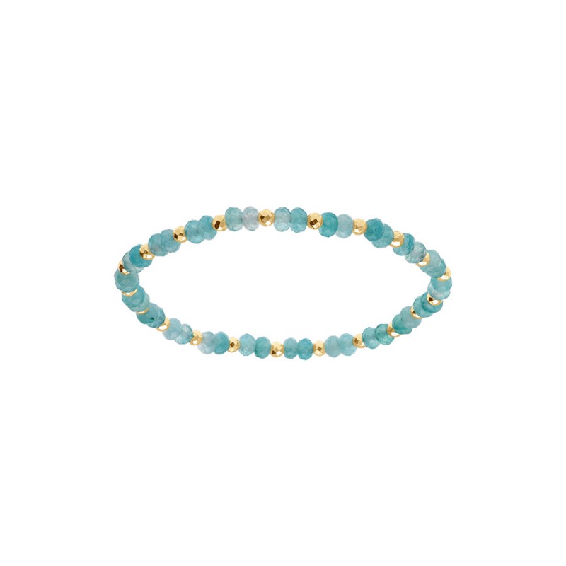 Bracelet acier EXTENSIBLE JADE BLEUE VÉRITABLE ET BOULES ACIER DORÉ