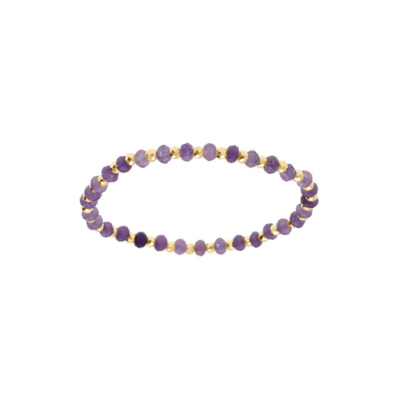 Bracelet acier EXTENSIBLE AMETHYSTE VÉRITABLE ET BOULES ACIER DORÉ
