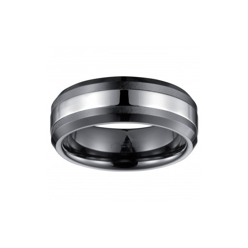 Bague acier CERAMIQUE NOIRE MAT/BRILLANT AVEC ANNEAU ACIER
