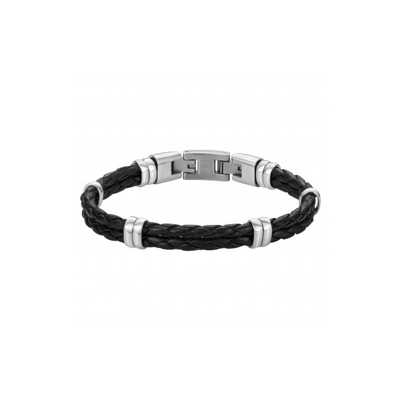 Bracelet acier CUIR CROUTE DE VACHETTE NOIR TRESSE ET LIEN ACIER 19+1.5cm