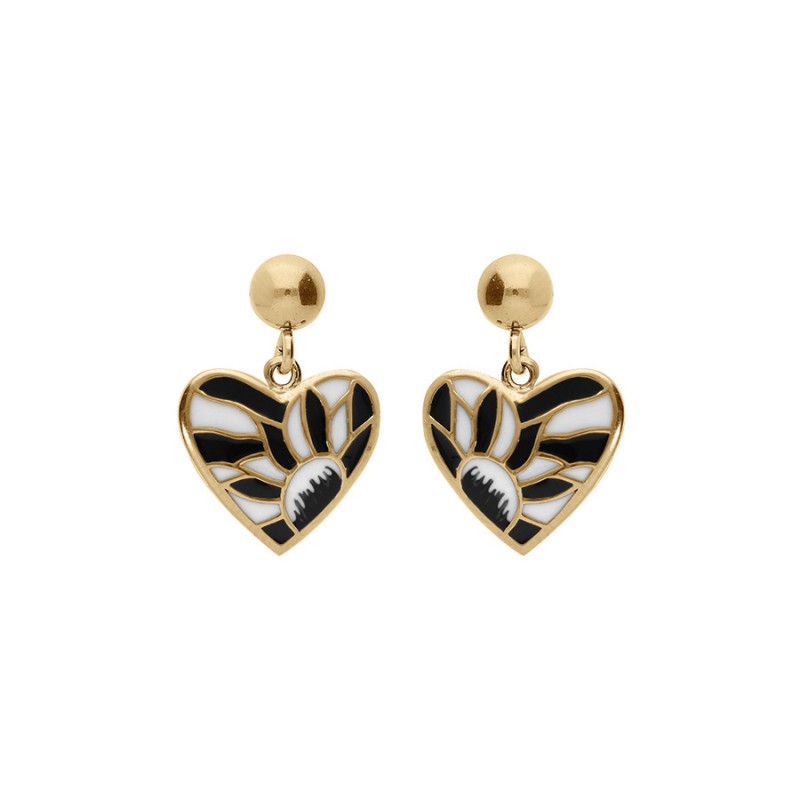 Boucles d'oreilles acier DORÉ STELLA MIA FORME COEUR RÉSINE BLANCHE ET NOIRE