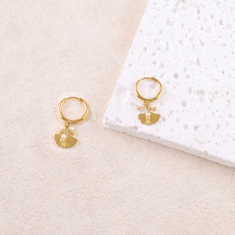 Boucles d'oreilles acier DORE ET PERLES BLANCHES
