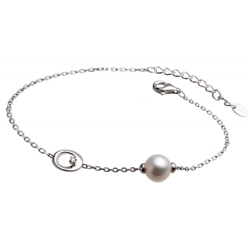 Bracelet argent 1 Perle de culture d'eau douce 7.5/8mm + Oxydes de zirconium