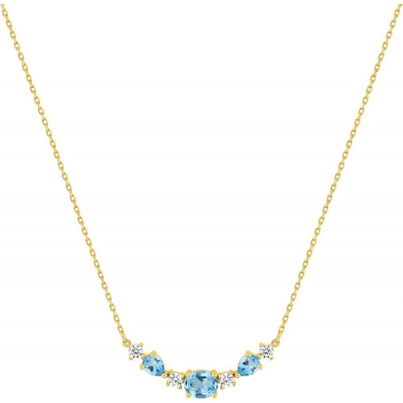 Collier or 9 carats jaune 3 topazes bleues traitées + 3 Oxydes de zirconium