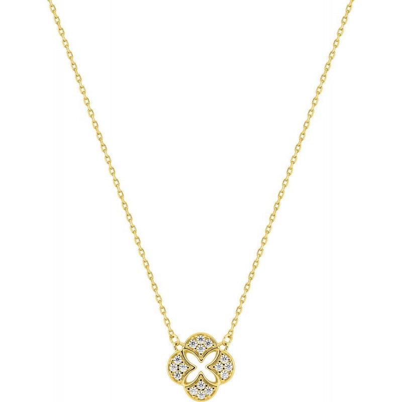 Collier or 9 carats jaune Trèfle Oxydes de zirconium