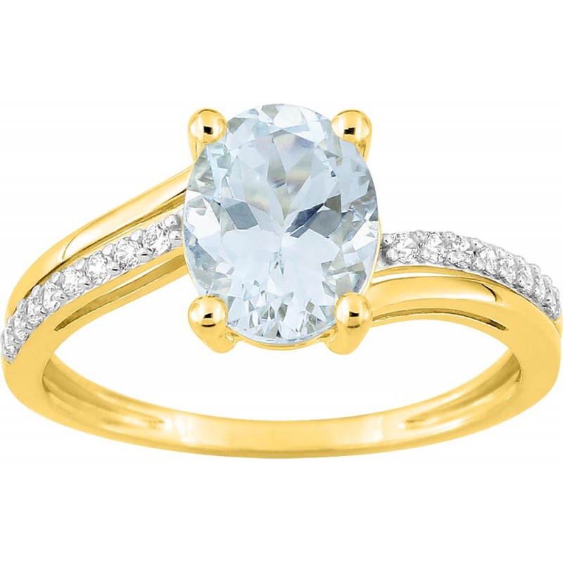 Bague or 9 carats Bicolore 1 aqua + Oxydes de zirconium