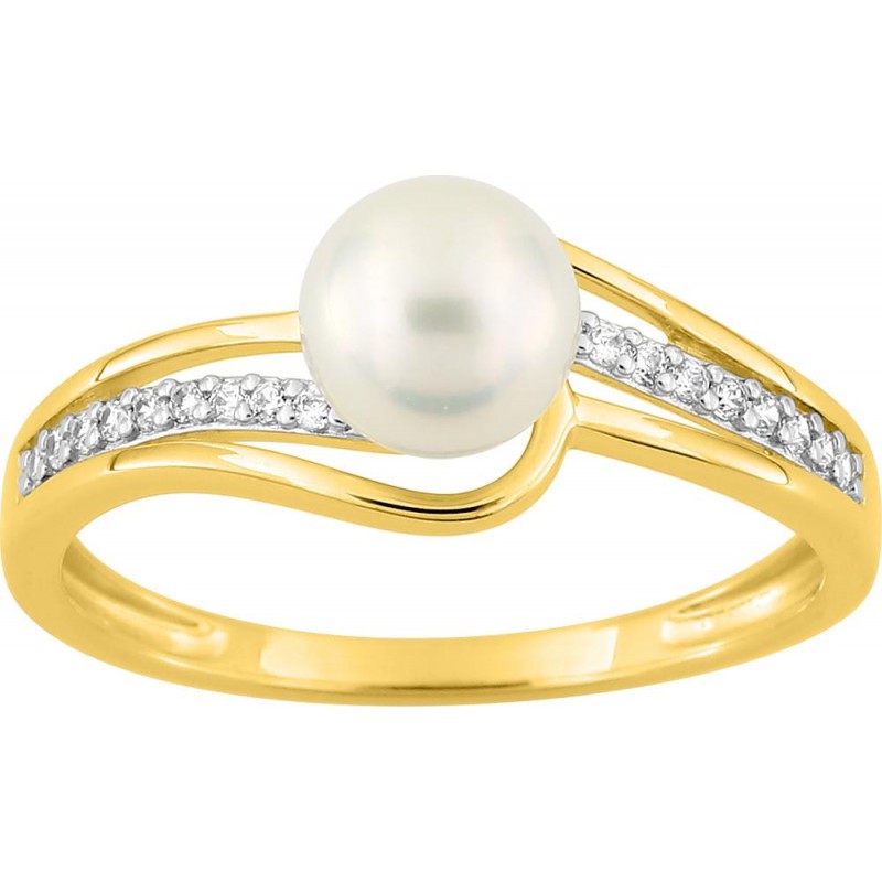 Bague or 9 carats Bicolore 1 perle de culture d'eau douce + Oxydes de zirconium