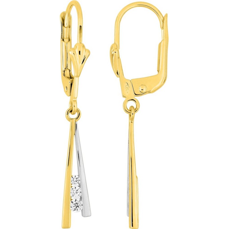 Boucles d'oreilles or 9 carats bicolore Oxydes de zirconium Système dormeuse