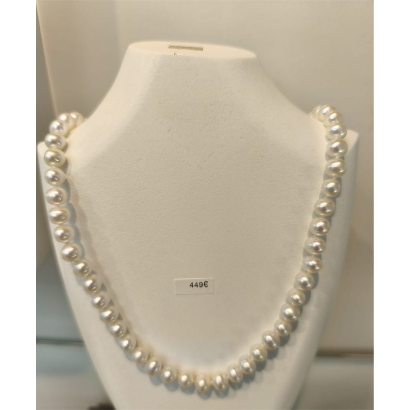 Collier or 750 jaune Perles de culture d'eau douce 6/6.5mm longueur 45cm